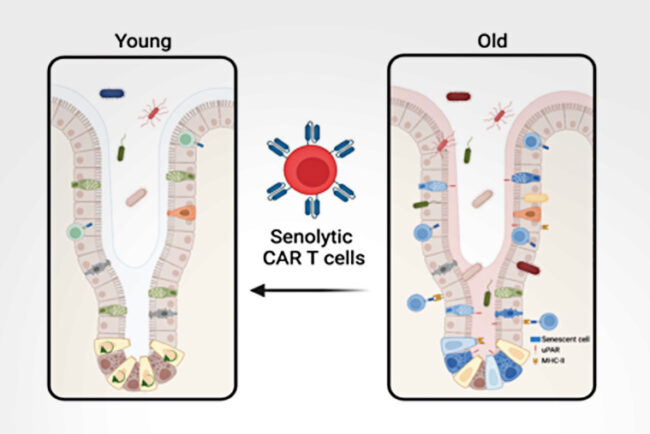Thrilled to share our latest preprint reporting the pro-regenerative effects of senolytic CAR T cells in the aged gut. Important implications for the use of CAR T cells in regenerative medicine!